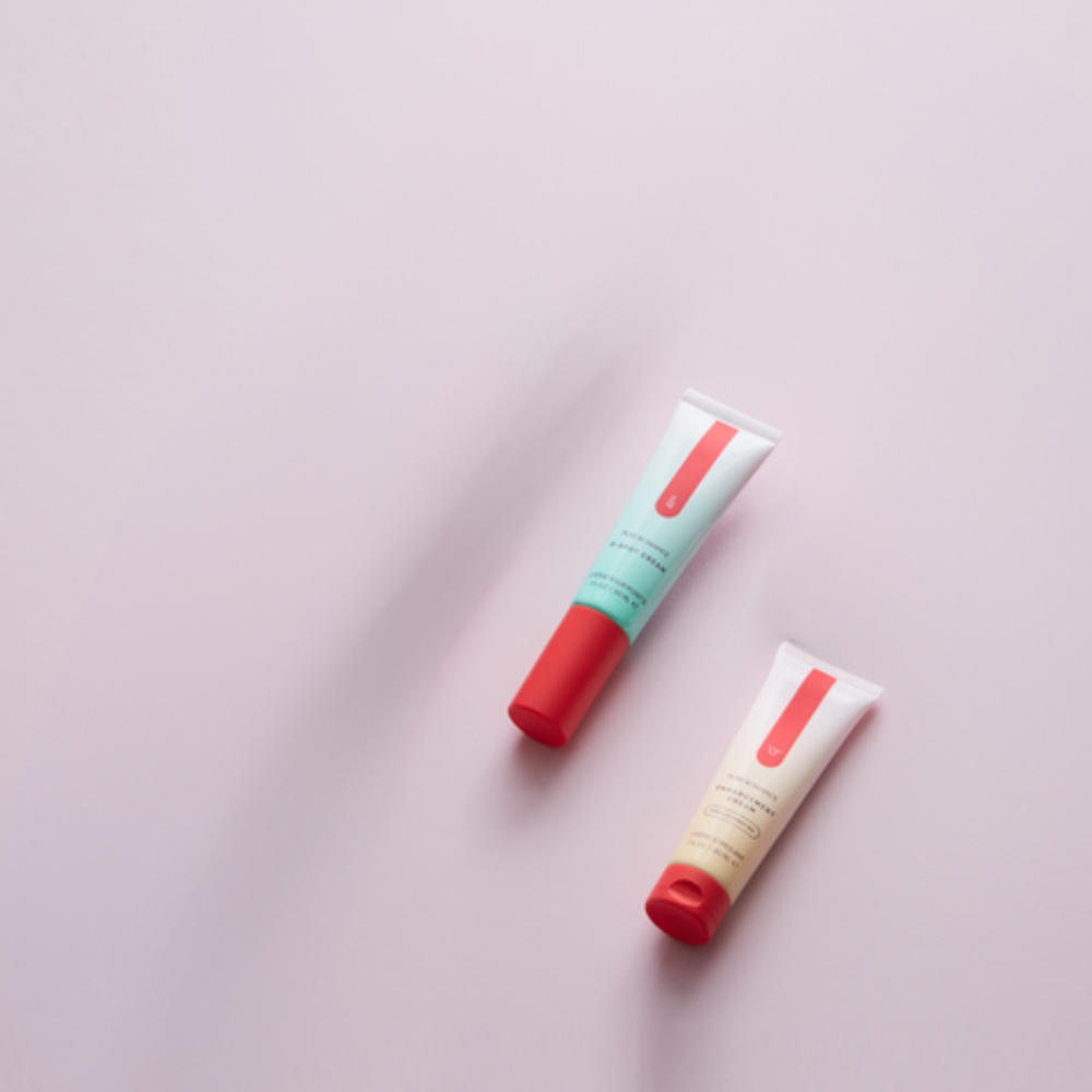 - Apply at least two pumps of the cream onto your fingertip.